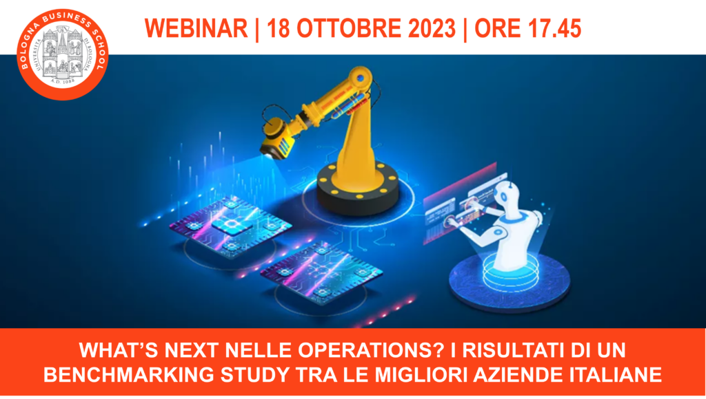Wednesday, October 18, 5:45 p.m. to 6:45 p.m., the webinar "What's Next in Operations? Results of a Benchmarking Study among the Best Italian Companies" conducted by Michele Bonfiglioli, Marco Brandalesi and Alberto Regattieri.