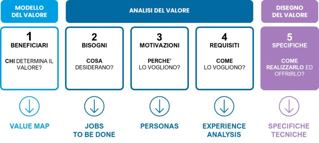 L’analisi del valore inizia con la comprensione delle esigenze e dei desideri del cliente. Una volta che vengono comprese le esigenze del cliente, si può iniziare a identificare i fattori che creano valore per loro.